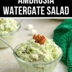 My Ambrosia Watergate Salad Recipe is heavenly creamy, light and fluffy, and absolutely delicious with the added crunch from pecans or walnuts. I have taken this side dish to countless potlucks and holiday dinners such as Thanksgiving.