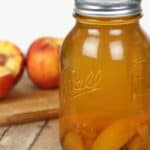This best Peach Moonshine recipe tastes just like peach cobbler. The best part is that since you use canned peaches you can make it all year long.