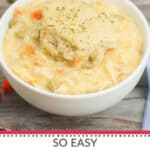 Making chicken and dumplings at home is so easy. Put everything right in the slow cooker and you are good to go.