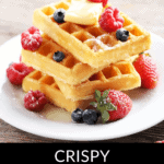 There are a few tips and tricks to getting crispy waffles. For one, slightly heat the milk or buttermilk beforehand, let the batter rest, and don’t whip your egg whites. It’s also important to cook your waffles on high heat.
