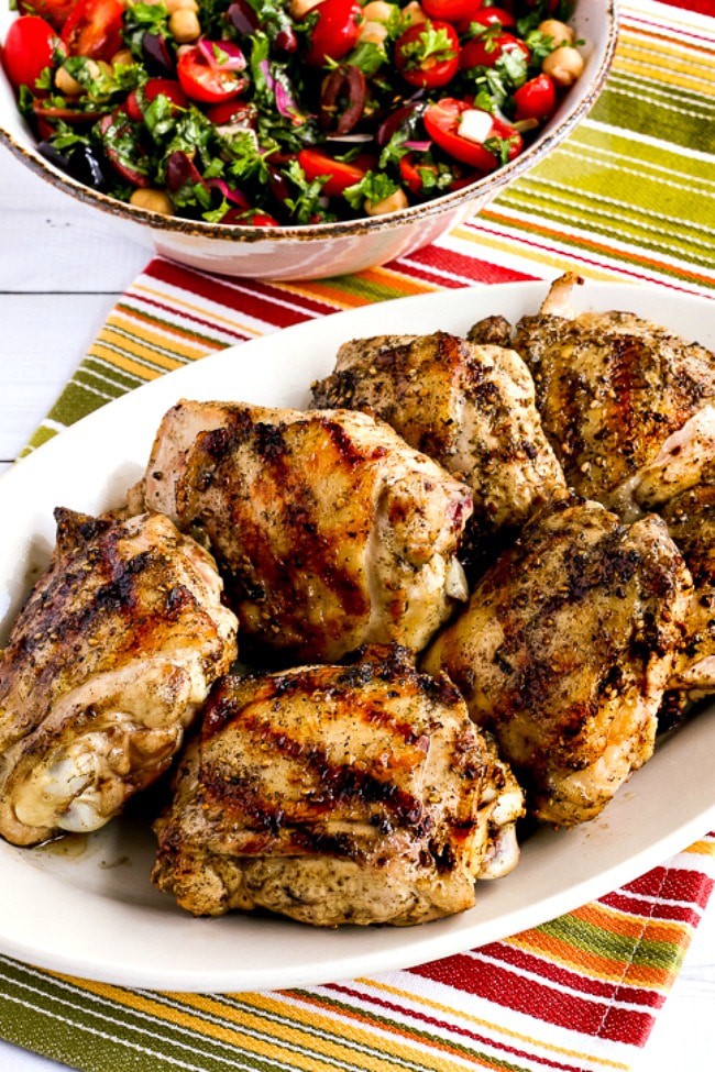 Grilled Chicken Thighs with Lemon and Za’atar are perfect for an easy summer dinner with Middle Eastern flavors. And the grilled chicken thighs with lemon will still be absolutely delicious even if you don’t have Za’atar!