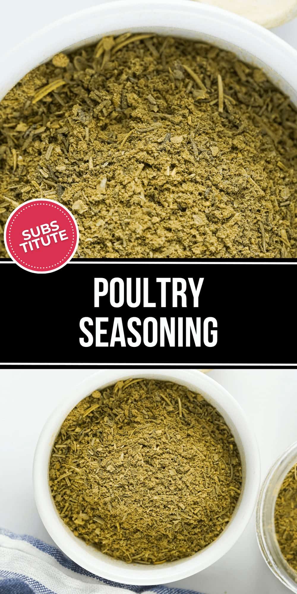 This Substitute for Poultry Seasoning is identical to poultry seasoning at the store. This recipe is a life saver for when you can’t find poultry seasoning in your cupboard or you run out of poultry seasoning!