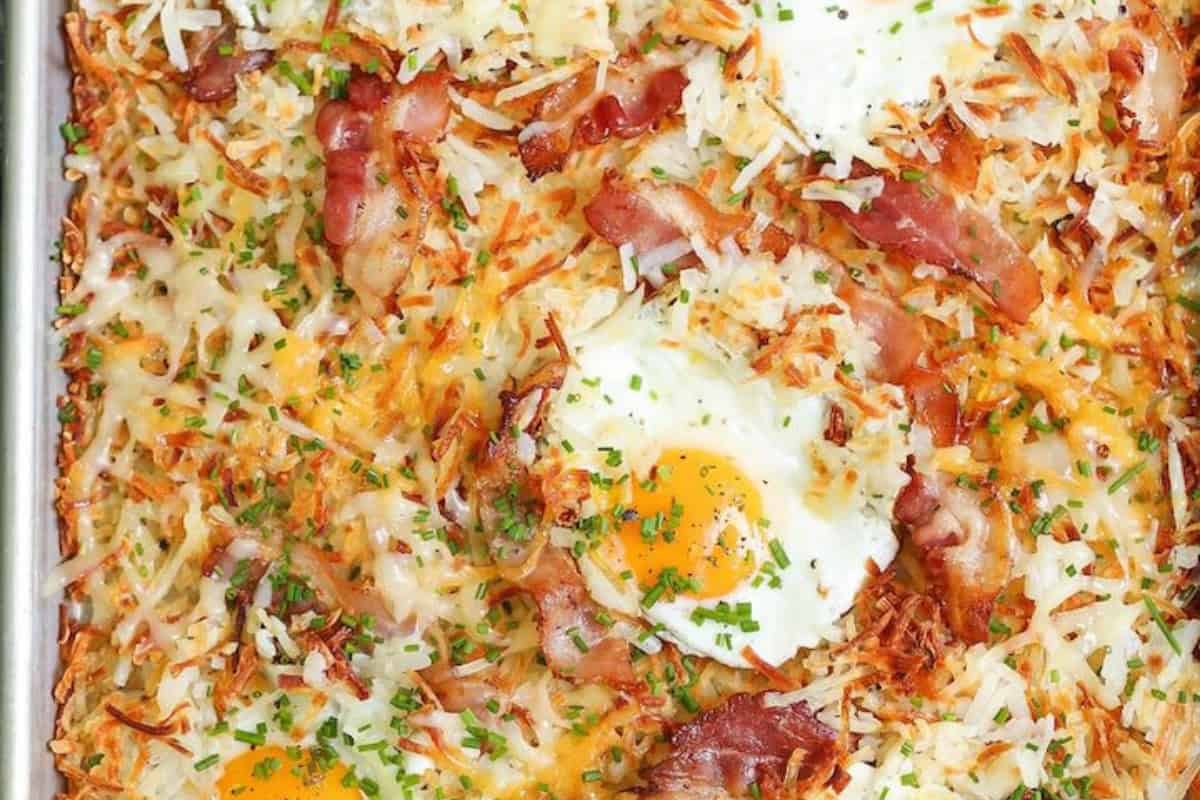 All your breakfast essentials—eggs, bacon, and potatoes—baked together on one tray. It’s efficient, easy to clean up, and perfect for feeding a hungry group.
