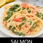 I like to use linguini cooked to al dente for this recipe. However, you can also use spaghetti or fettuccini with the perfectly cooked salmon.