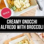 This Creamy Gnocchi Alfredo with Broccoli is one of my all-time favorite easy gnocchi recipes. These little dumplings in the creamy sauce are ready in 16 minutes! Keep it in your quick cooking arsenal when you want a hearty, satisfying and quick meal.