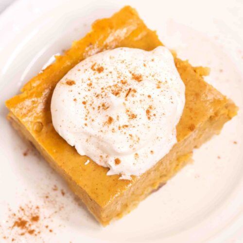 These Pumpkin Pie Dessert Bars capture everything we love about the classic pie. Silky pumpkin filling, warm spices and a buttery crust but in a fuss-free format that’s perfect for sharing. Just sliceable, snackable squares that bring the flavor of fall to potlucks, lunchboxes, and late-night cravings. Perfect for baking ahead for Thanksgiving.
