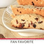 These are the basic steps for making Cranberry Orange Biscotti. Refer to the full, printable recipe card below for detailed instructions. Nutritional information is an estimate. We love reader interactions, please leave a comment if you try this recipe for cranberry orange biscotti.