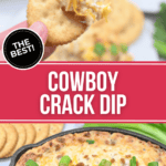 Cowboy Crack Dip is an irresistible combination of ranch, bacon, and creamy cheesy goodness. It’s perfect for your next event or casual movie night at home. Serve with chips, bread, or crackers.
