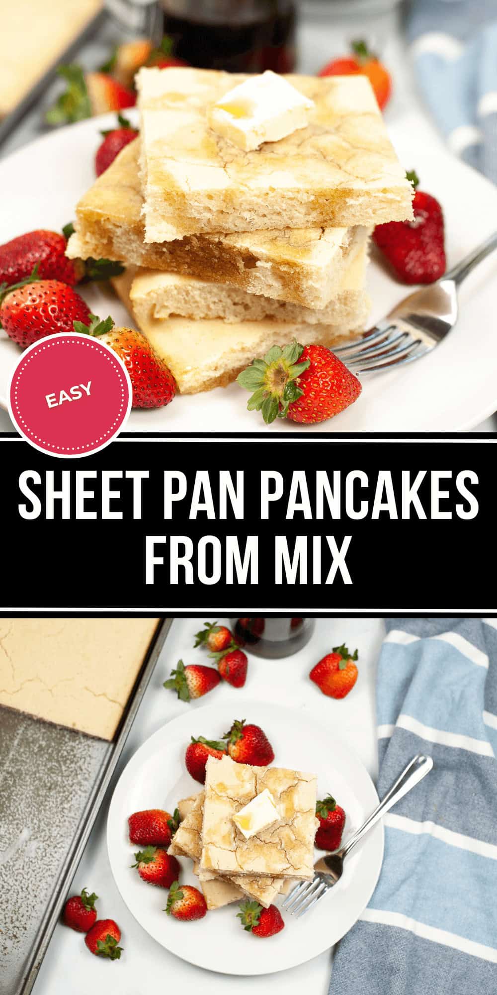 Sheet Pan Pancakes from Mix are the best way to make pancakes. Make a tray of these instead of flipping individual pancakes for breakfast that’s done in 20 minutes and only needs 3 ingredients!