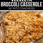 Velveeta Broccoli Casserole with Ritz Crackers combines creamy cheese sauce and tender broccoli with a crunchy ritz cracker topping. This is one of those recipes that works for a weeknight side or for special holiday dinners.