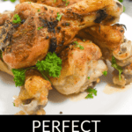 Lastly, bake in the oven for 30 to 35 minutes, basting several times for juicy baked chicken legs. Chicken should be golden brown.
