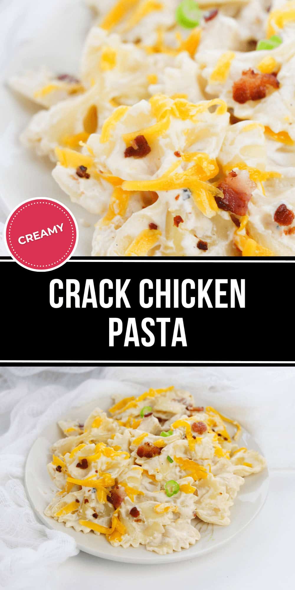 Crack Chicken Pasta is a fantastic 30 minute meal. The juicy chicken in creamy ranch sauce with pasta is a perfect combo. It’s addicting and so easy, you will want to make it again and again!