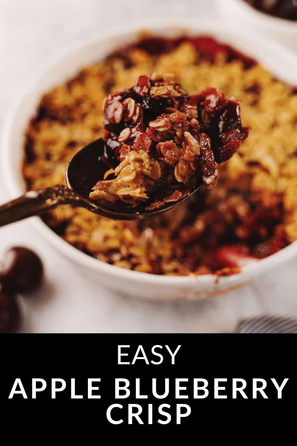 This Apple Blueberry Crisp combines tart and sweet flavors into a delicious dessert. With crisp apples and juicy blueberries, this fruity dessert is topped with crunchy streusel and oats.