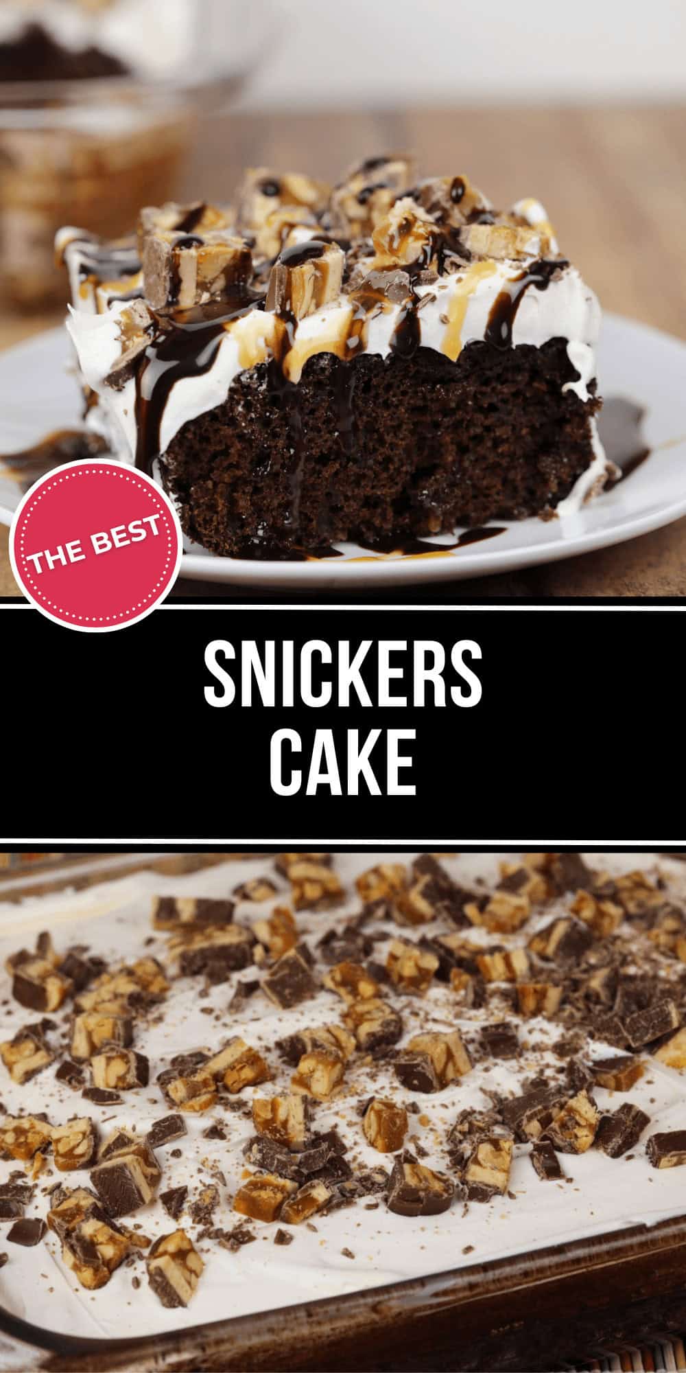 What do you get when you cross a moist chocolate cake with caramel, peanuts, candy bars and other delicious ingredients? You get Snickers Cake with its amazing frosting! the most over-the-top delicious cake that will have your family begging for more and one of the best things that will ever come out of your oven.